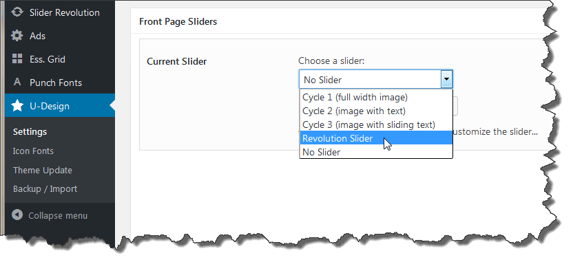 To assign the Revolution Slider with "U-Design" theme, select it from the menu: